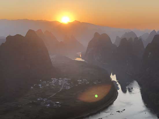 This renowned national park is particularly known for its extraordinary natural scenery of dramatic limestone karst steep hill’s sunrise/sunset views and the Lijiang River (Li River) that meanders gracefully through Guilin and Yangshuo, covering a length of about 83 kilometers. The mountains decorate the shoreline as they individually pierce towards the sky. The scenery found between these two cities even serves as the artwork on the Chinese 20 Yuan currency note. The unique towering formations, alongside the crystal-clear waters of the Lijiang River, create a magical and almost dreamlike views that is often depicted in traditional Chinese paintings.