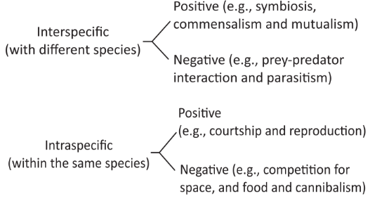 The various organisms, belonging to many species, existing in an ecosystem, interact amongst themselves to occupy the same space. The following are the types of interactions.