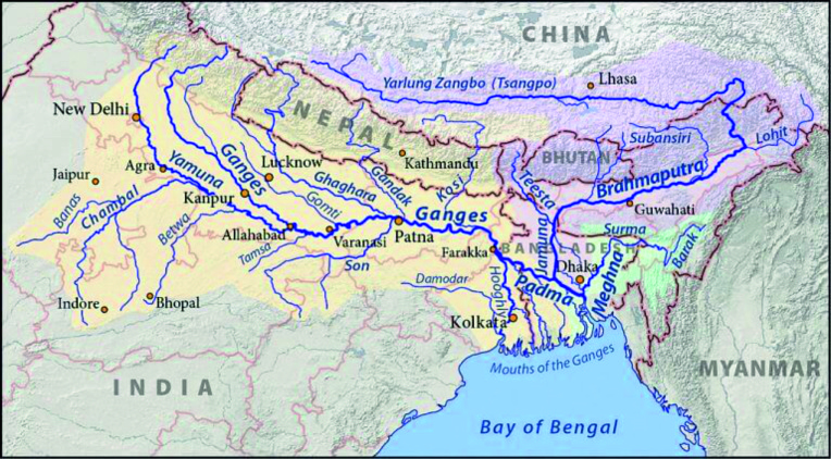 • After flowing through Tibet it enters India through Arunachal Pradesh and flows through Assam and Bangladesh before it joins Bay of Bengal.